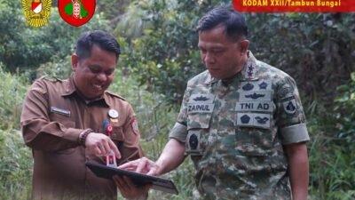 BANGGAIPOST.COM,Toili-Bhabinkamtibmas Polsek Toili Polres Banggai Aipda Abdul Halim, SH bersama Bhabinsa, mendampingi Pertamina EP melakukan pengukuran jalur lokasi ring Pertamina EP di kawasan Perkebunan Sawit Desa Benteng Kecamatan Toili, Banggai, Jumat (1/9/2023) siang.