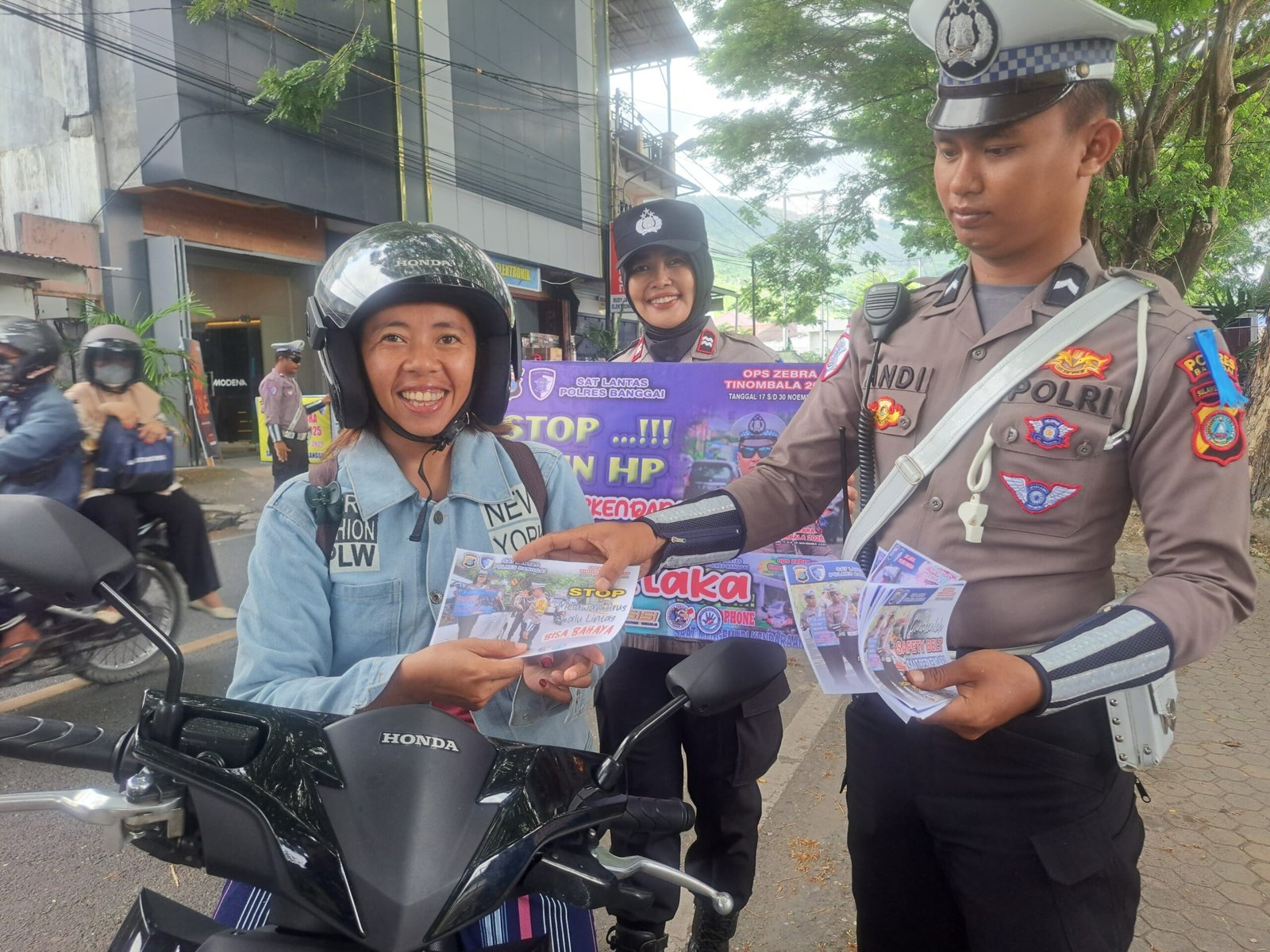 Bukan Surat Tilang, Satlantas Polres Banggai Bagikan Brosur Kamseltibcarlantas ke Pengendara