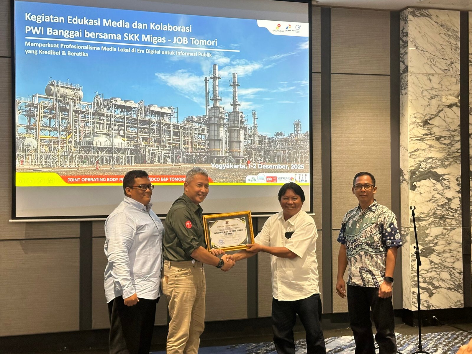 Sebagai bentuk apresiasi, PWI Kabupaten Banggai memberikan penghargaan kepada JOB Tomori, atas kontribusi dalam meningkatkan kapasitas wartawan.