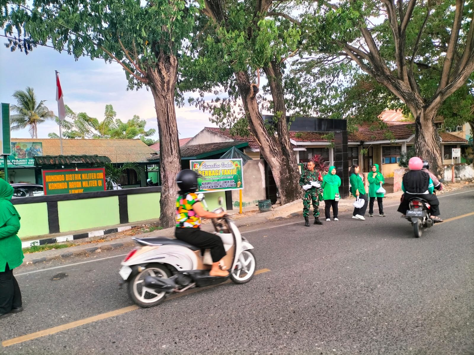 BANGGAIPOST, LUWUK – Menyambut bulan suci Ramadan, Koramil 1308-01/Luwuk bersama Persit Kartika Chandra Kirana Ranting 02 menggelar kegiatan berbagi takjil kepada masyarakat di sekitar wilayah Koramil, Jumat (13/3/2026).
