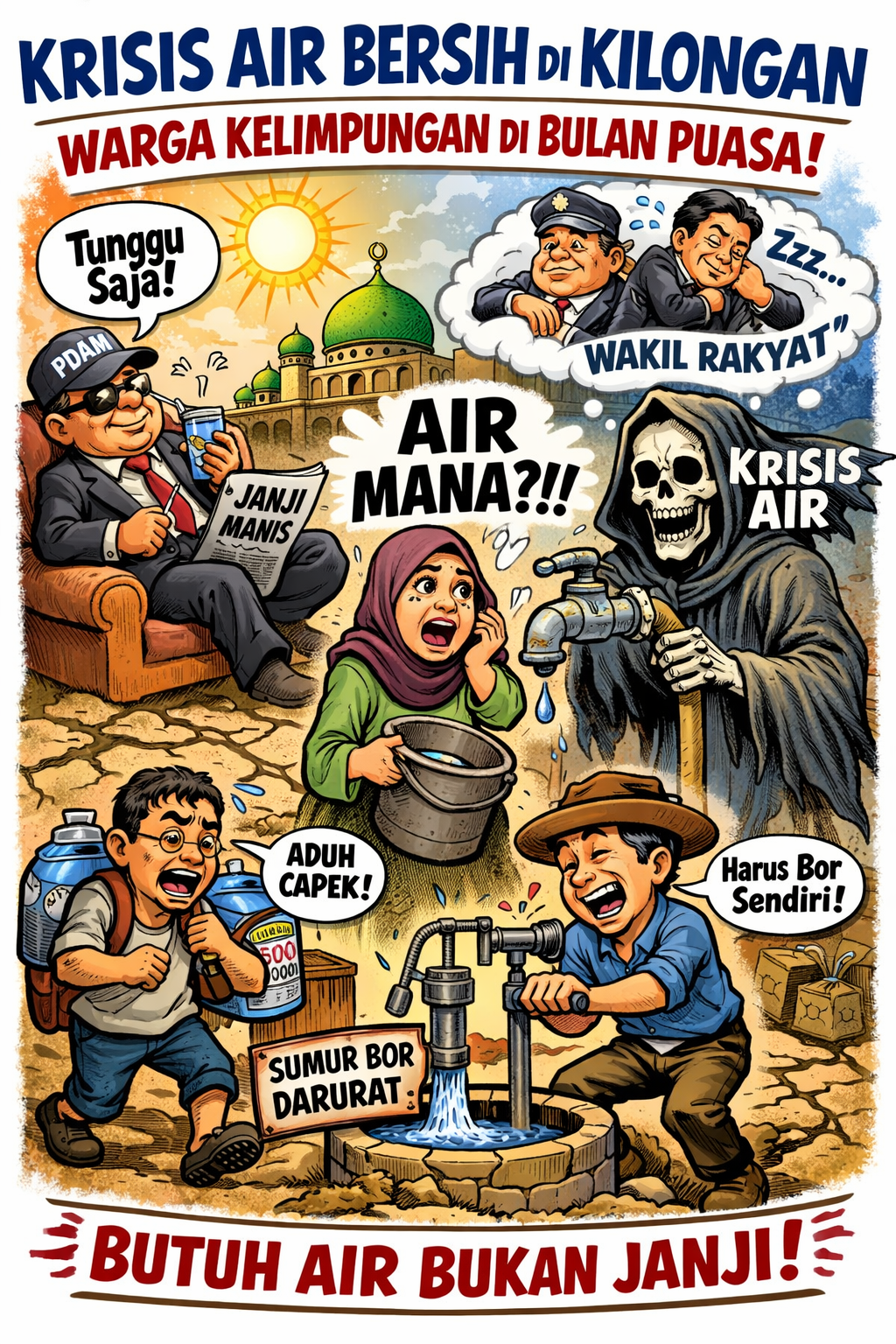 “Ini bulan puasa, kami butuh air, bukan janji,” tegas salah satu warga.