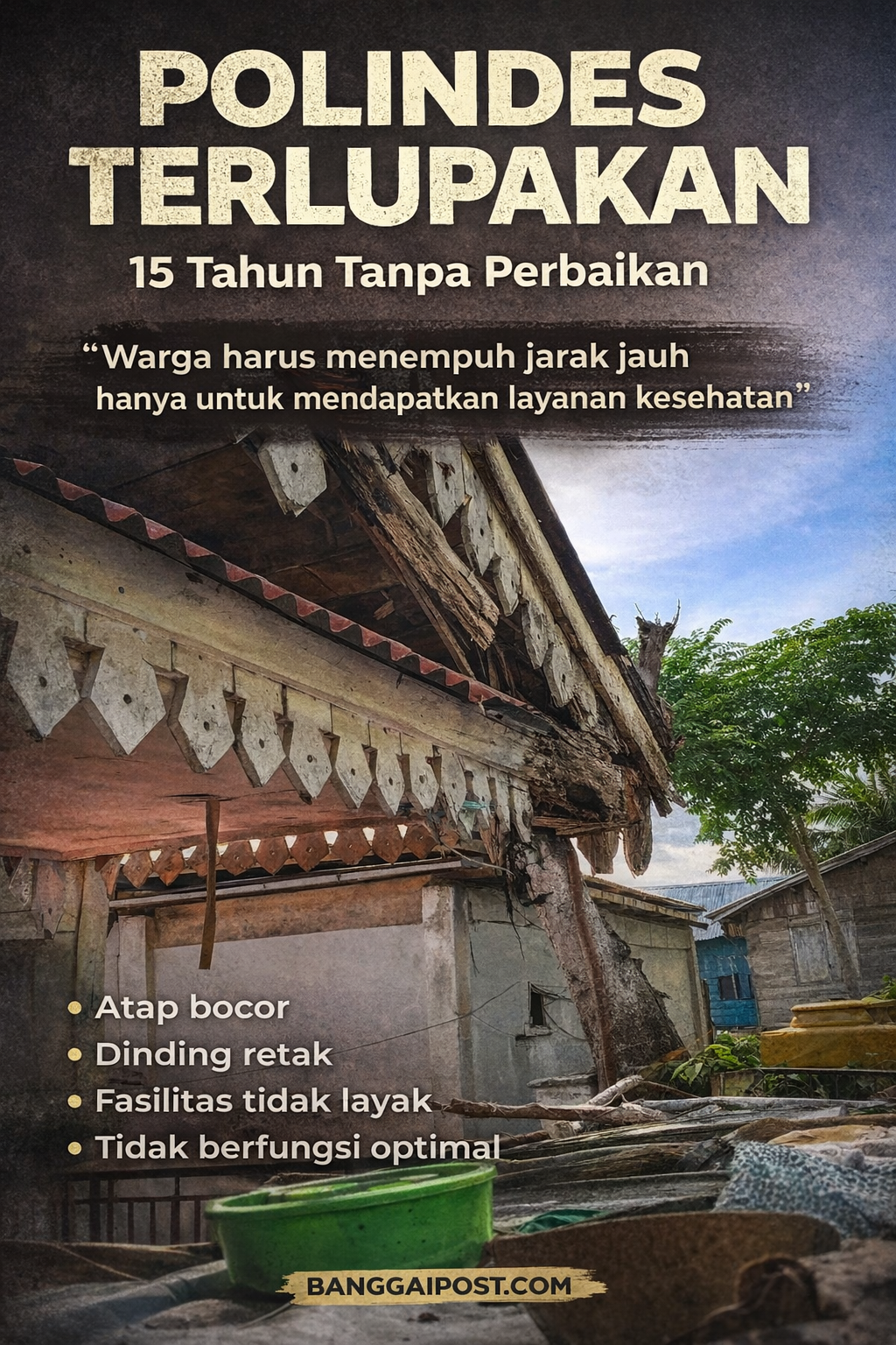 Di desa yang jauh dari pusat layanan kesehatan, keberadaan Polindes seharusnya menjadi garda terdepan. Namun yang tersisa hari ini hanyalah bangunan yang perlahan rapuh, seakan ikut melemah bersama harapan warga.