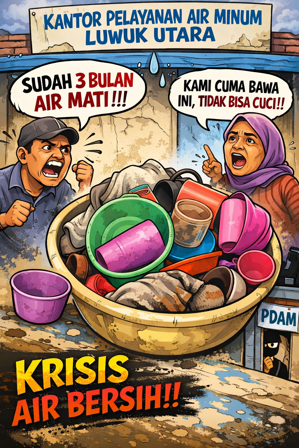 Aksi warga bukan sekadar menyampaikan protes. Mereka bahkan membawa piring dan pakaian kotor sebagai simbol penderitaan yang harus mereka tanggung selama air tidak mengalir ke rumah-rumah mereka.